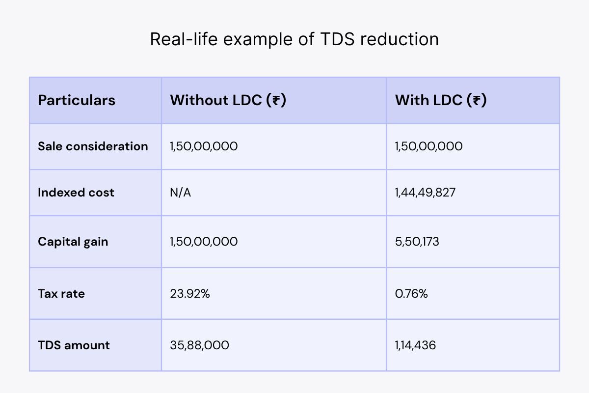 Apply for a Lower Tax Deduction Certificate (LDC) through Form 13 before selling. This certificate lets buyers deduct TDS at reduced or nil rates if you show lower tax liability. Include expected capital gains and total India income for the year.