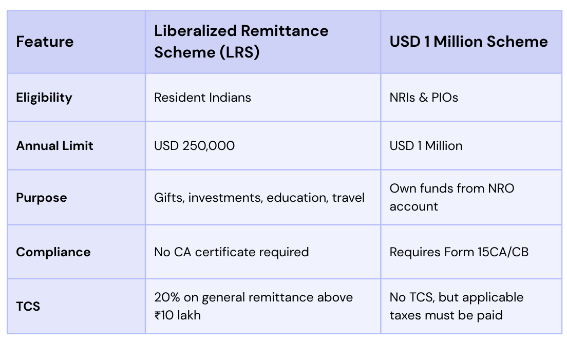 Difference between Liberalized Remittance Scheme & USD 1 million scheme