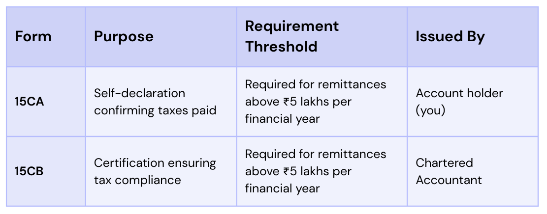 The right paperwork is key to moving funds from India. NRO account holders must file Form 15CA and Form 15CB to show they've paid their taxes, especially if the amount goes over ₹5 lakhs per year.