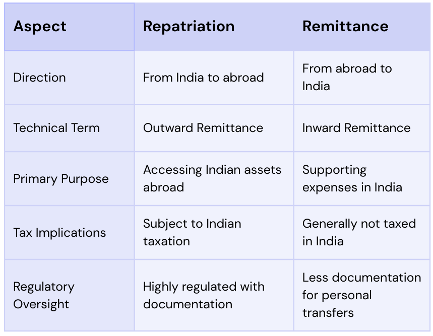 People often mix up repatriation and remittance, but they represent two different directions of fund movement:
