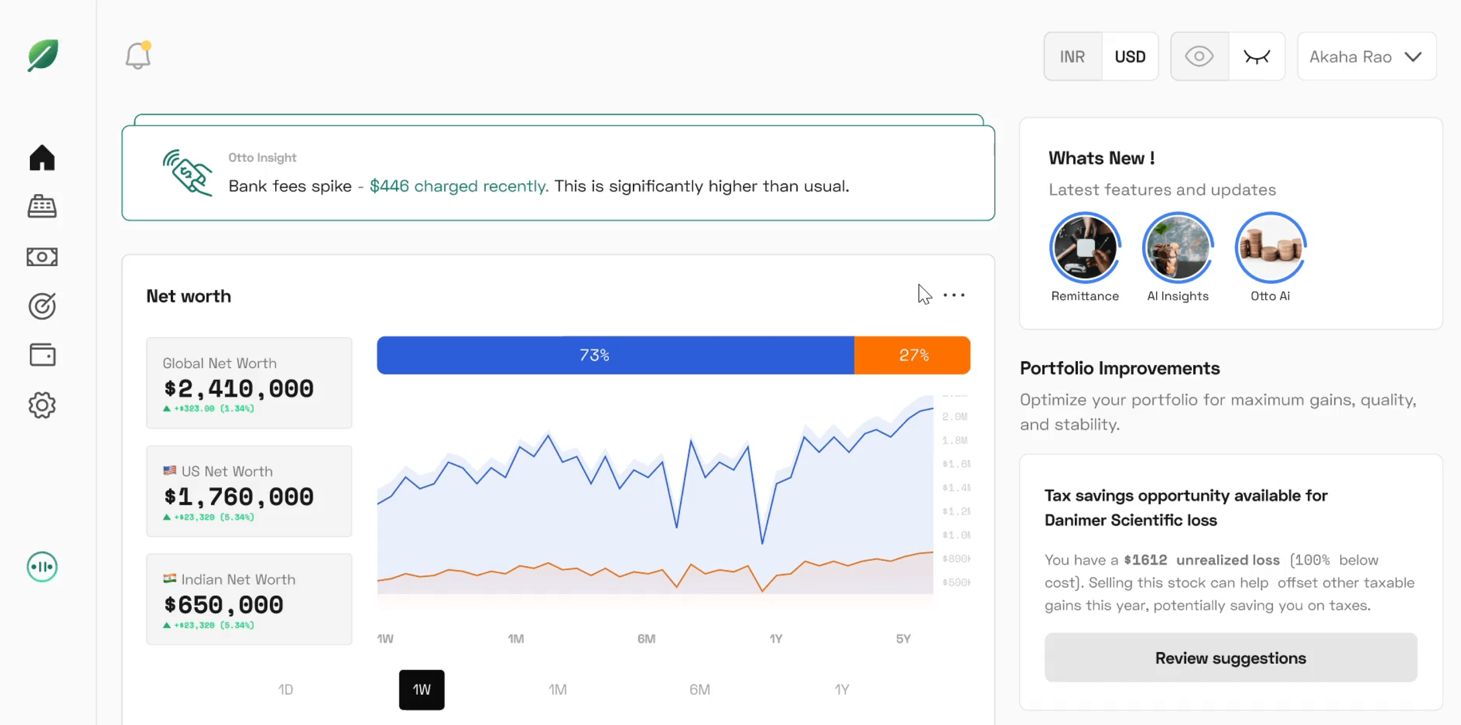 One dashboard shows your net worth across India and the US, currency-aware. Understand allocation, performance, and risk without switching between apps.
