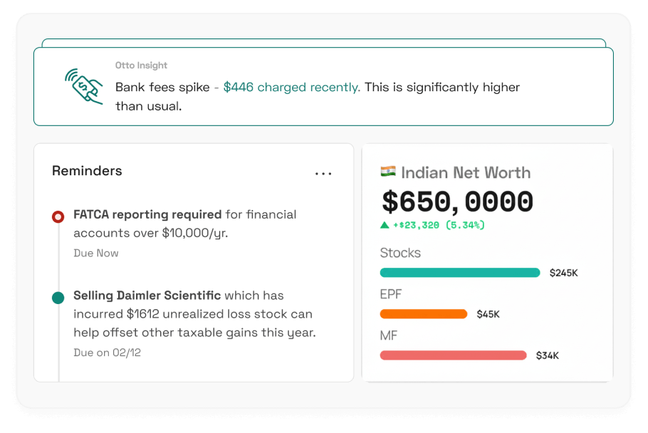 Stop jumping between platforms, forums, and tools to understand your finances. Get instant, personalised answers based on your real financial data across India and the US.