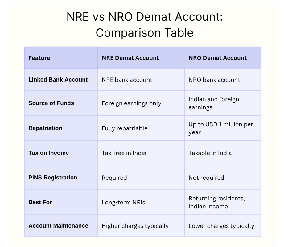 - NRI demat accounts come in two types: NRE (fully repatriable) and NRO (limited repatriation), and choosing the right one depends on whether you want to transfer funds abroad